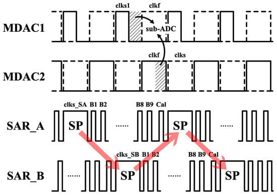 Timing diagram of the critical clock phases for each stage. Asynchronous clocking is used for the SAR quantizer.