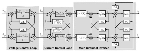 Control block diagram of inverter inner control loop in dq0 coordinate (by using small-signal model).