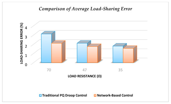 The average load-sharing errors of three different load resistances using traditional power droop control and network-based control.