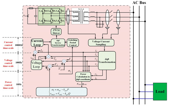 The different control time-scale distribution of current, voltage, and power control loop in a typical droop-controlled AC microgrid.