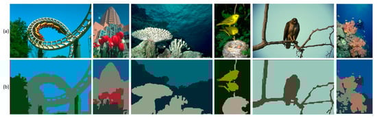 - Martín, D.; Fowlkes, C.; Tal, D.; Malik, J. A database of human segmented natural images and its application to evaluating segmentation algorithms and measuring ecological statistics. In Proceedings of the Proceedings Eighth IEEE International Conference on Computer Vision. ICCV 2001, Vancouver, BC, Canada, 7–14 July 2001. [Google Scholar]