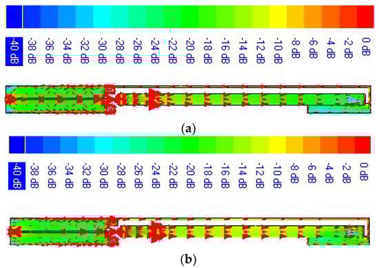 Current distributions at (a) 1.67 and (b) 2.08 GHz.