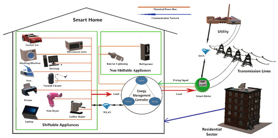 - Hussain, H.M.; Javaid, N.; Iqbal, S.; Hasan, Q.U.; Aurangzeb, K.; Alhussein, M. An Efficient Demand Side Management System with a New Optimized Home Energy Management Controller in Smart Grid. Energies 2018, 11, 190. [Google Scholar] [CrossRef]