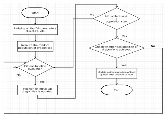 where and are two randomly selected constants between 0 and 1; is also a constant number that is selected according to the situation of the problem. The step by step process of the proposed DA is depicted in Algorithm 1 i.e., Pseudocode and Figure 4 i.e., flow-chart: