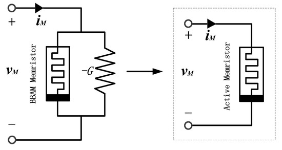 Therefore, it was passive. However, an active device is feasible and effective for designing the chaotic circuit. Thus, a composite component named active memristor was constructed by using the memristor with a negative conductance in parallel, as shown in Figure 1.