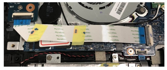 Before its improvement, the PCB layout for EM—ISight instruments is applied to examine the distribution of recent games intensity to find the HDMI port, and there is also a substantial amount of EMI radiation energy. The scattering region has covered the HDMI and the adjacent IO port (LAN and start), and therefore the noise through the wire around the test is easily out of the noise, as shown in Figure 16. As for its color, the red represents more energy, and the blue dot in the graph indicates the strongest power in the area.