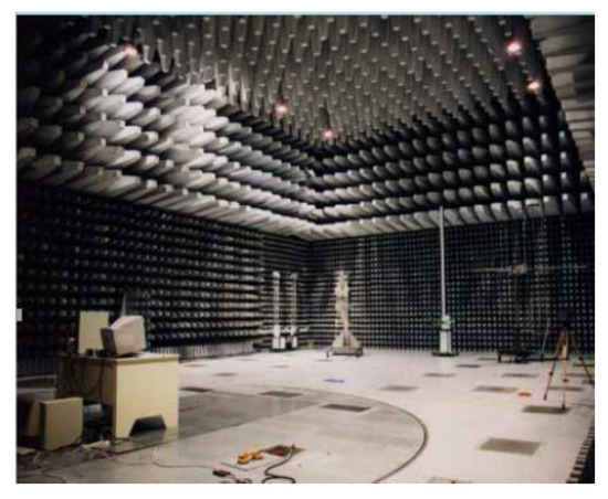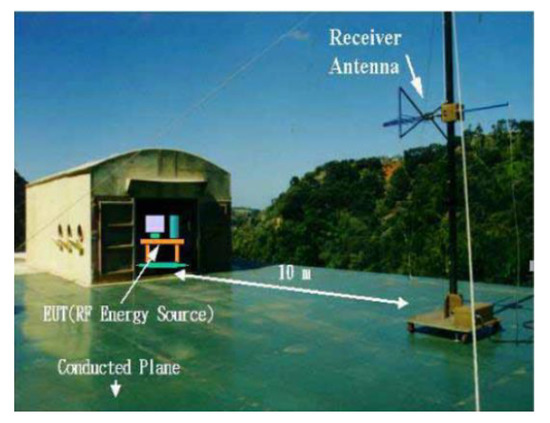 According to the formal EMI EN55022 regulations (30 m~1 GHZ) for validation field, there are two kinds of spaces. One is a relatively open space, commonly known as the open site, as shown in Figure 9. In some cases, open site testing leads to the results of validation such as the AM/FM radio band in Taiwan from 88 MHZ to 108 MHZ due to the environmental noise effects. If the noise falls into the radio frequency band, the system noise signal is broadcast band and the phenomenon of cover occurs. As a result, the validation gives rise to a grey area, and it is impractical to ensure the authenticity of the products. Due of this, additionally, another indoor dark room space was created, and it is known as the 10 m chamber, as shown in Figure 10. Since the enclosed space can be isolated from the external noise interference, it ensures that full spectrum noise occurs in electronic products. Although it is not easy to misjudge the noise signal, the venue is costly. Therefore, the chamber has a 10 m fewer third-party certification unit. In addition, to make an appointment at the site, the cost is approximately three to four times higher as compared with the open site.