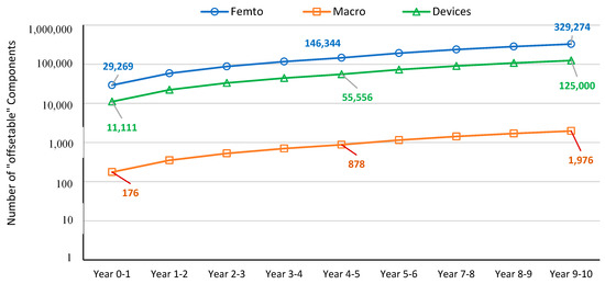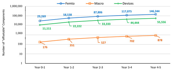 As mentioned, the proposed model is a two tier one, meaning that EE and the carbon offset method in conjunction need to be able to reduce and offset 43% of the overall considered CF. Nevertheless, these are estimated world consumption values, in megatons, meaning that it is important to understand how the whole offsetting process works and how much biotic sequestration it takes to offset the CF of individual elements, such as a base station, a femtocell or an individual smartphone.