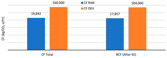 For the considerations and assumptions of this work, the total amount of CF that must be offset and neutralized will be the sum of both edges we are focusing on