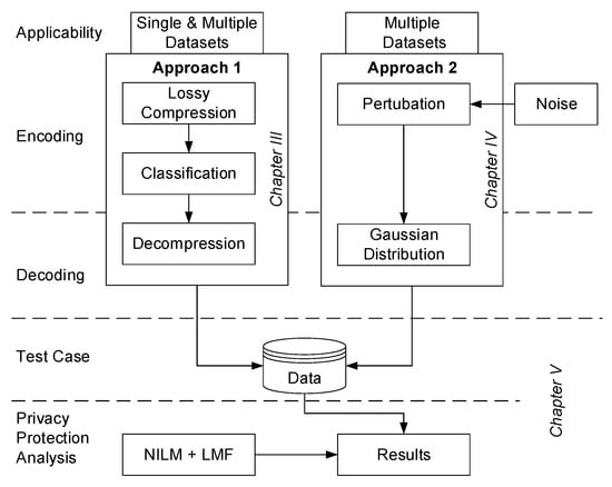 These present and future challenges, especially problems (II) and (III), could be addressed by the following approaches. However, this development and evolution induces massive privacy concerns. In [], the relevance of smart meter data privacy and the reasons for protecting private information are analyzed. It was demonstrated that already in the 1990s, individual information could be separated from household load profiles. The used so-called NILM—non-intrusive load monitoring technique, illustrated the appliance information, which could be used to collect sleepwake-cycles or the presence of people [,].