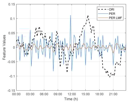 After the perturbation, the number of features extracted with NILM decreases rapidly and it varies from the original dataset substantially, shown in Table 3. With additive LMF de-noising, more features can be extracted. Using LMF, the number of features is closer to the original one, but the minimal ratio of AF/DF makes the feature recovery still useless. Figure 8 shows the perturbation results of one day on average. The difference between the original and the distorted dataset, and their feature extraction is significant.