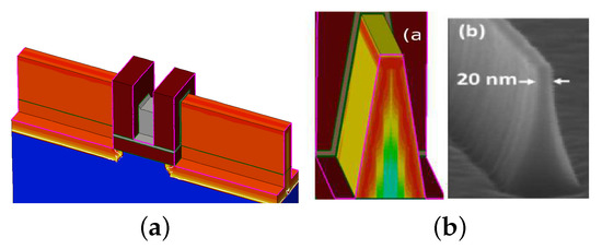 - Vardi, A.; del Alamo, J.A. Sub-10-nm Fin-Width Self-Aligned InGaAs FinFETs. IEEE Electron Device Lett. 2016, 37, 1104–1107. [Google Scholar] [CrossRef]