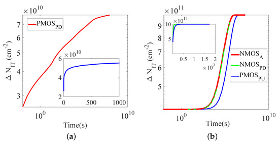 - Kufluoglu, H.; Alam, M.A. Theory of interface-trap-induced NBTI degradation for reduced cross section MOSFETs. IEEE Trans. Electron Devices 2006, 53, 1120–1130. [Google Scholar] [CrossRef]