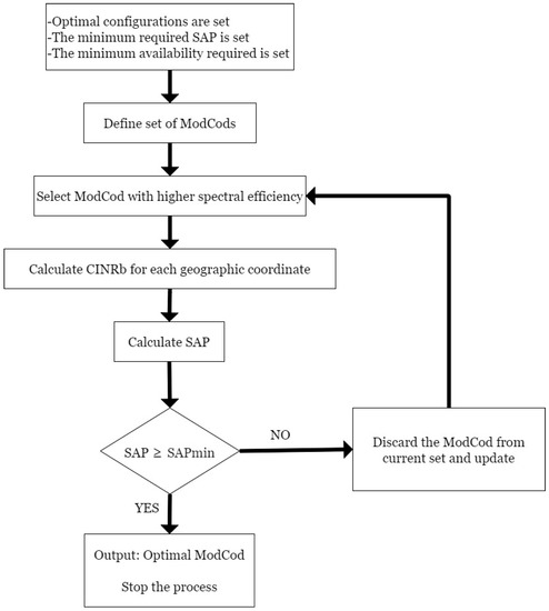 The proposed methodology is divided into two stages (Figure 2): first, the optimum system configuration (user G/T and number of satellite beams) is obtained in terms of cost per Gbps in orbit; second, the satellite capacity using diverse transmission schemes (CCM and VCM) is calculated for a set of link availabilities imposed in the service area.