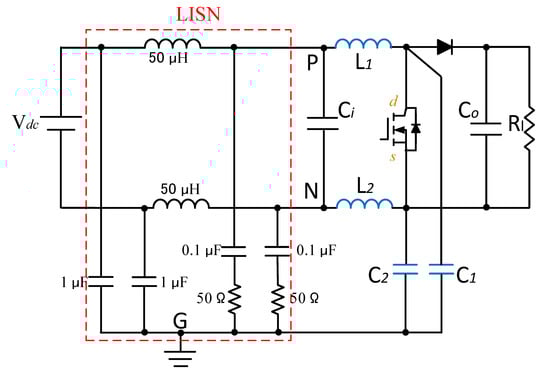 The switch-mode power supply (SMPS) has played an important role in power generation and conversion systems, which tend to require a higher reliability, a higher power density, and a longer working life. However, the controllable switches adopted in SMPS, like metal-oxide-semiconductor field-effect transistors (MOSFETs), insulated gate bipolar transistors (IGBTs) and especially, the newest wide bandgap (WBG) semiconductor switches, may generate violent voltage and current gradients (dv/dt and di/dt). Those gradients bring a serious EMI problem and threaten the normal operation of electrical equipment. Typically, relevant electromagnetic compatibility (EMC) standards which include conducted emission and radiated emission must be fulfilled before the products enter the market [1,2].