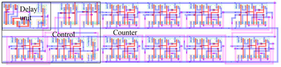Microchip of the counter-based time-to-digital converter (TDC). It consists of a delay unit, a control unit, and an 8-bit counter.
