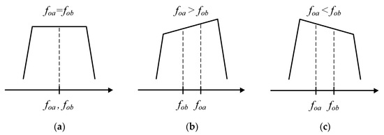 Passband flatness control: (a) foa = fob, (b) foa > fob, (c) foa < fob.