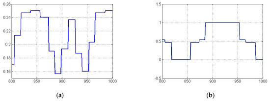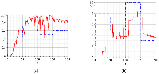 As control parameters adopted by the parameters a and c, let us design the synergetic observer by setting parameter b as “known” [13,26,27,28,29]. According to overall design procedure [40], we replace the unknown parameters with their dynamic models