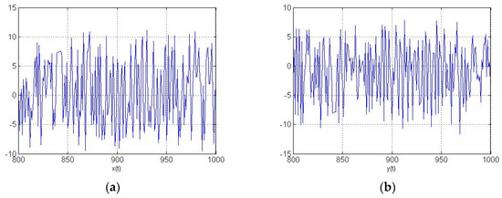 Encoded state variables at the transmitter: (a) state variable X(t); (b) state variable Y(t).