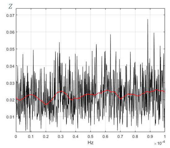 Fourier series analysis allowed us to demonstrate the non-obvious frequency of the signal. This is so because the Fourier series result is the signal frequency spectrum. For extra analysis, we used Savitzky-Golay filtering. The red lines in Figure 9 and Figure 10 show the filtered signal.