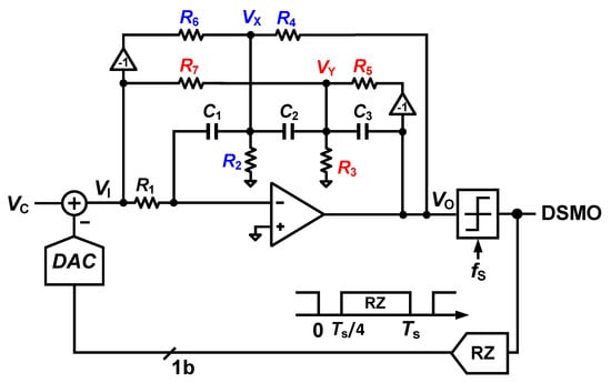 - Cho, Y.-K.; Kim, M.-D.; Kim, C.-Y. A low-power continuous-time delta-sigma modulator using resonant single op-amp third-order loop filter. IEEE Trans. Circuits Syst. II Express Briefs 2018, 65, 854–858. [Google Scholar] [CrossRef]