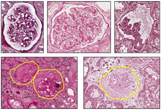 - Temerinac-Ott, M.; Forestier, G.; Schmitz, J.; Hermsen, M.; Bräsen, J.; Feuerhake, F.; Wemmert, C. Detection of glomeruli in renal pathology by mutual comparison of multiple staining modalities. In Proceedings of the IEEE 10th International Symposium on Image and Signal Processing and Analysis, Ljubljana, Slovenia, 18–20 Sepember 2017; pp. 19–24. [Google Scholar]