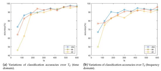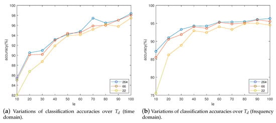 Apart from extracting features in frequency domain, we can also extract features in the time domain directly. The existing literature has proposed many time-domain features and achieved an acceptable classification accuracy, but only a portion of them contribute primarily to the classification performance []. In this paper, the time-domain feature vector is shown as follows: