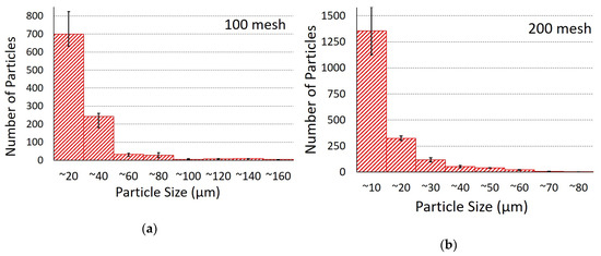 Particle size distribution of (a) 100-mesh and (b) 200-mesh.
