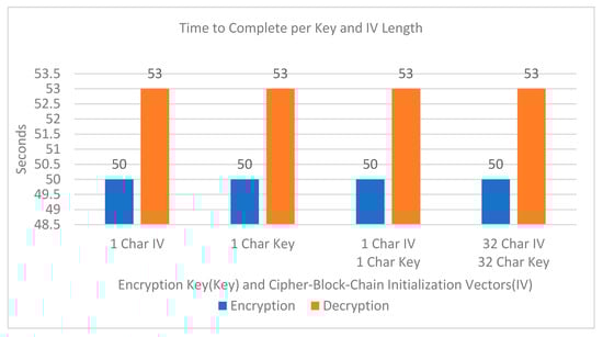 Time to complete encryption/decryption remained the same regardless of key or IV length.