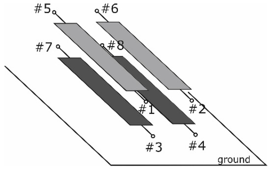 - Djordjevic, A.R.; Bazdar, M.B.; Sarkar, T.K.; Harrington, R.F. Matrix Parameters for Multiconductor Transmission Lines, Software and User’s Manual; Artech House: Norwood, MA, USA, 1989. [Google Scholar]