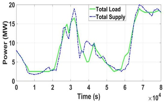 A total of 40 EVs had a considerable effect on stabilizing the frequency fluctuations in IMGs, whereas 30 EVs also impacted the situation positively. This significantly reduced the load on the IMG in peak hours, where the generation-load imbalance caused considerable fluctuations in frequency, especially from 10:00–14:00, as shown in Figure 8, within interval between 3–4. In the off-peak hours, the same EVs acted as a load to stabilize the IMG voltage.