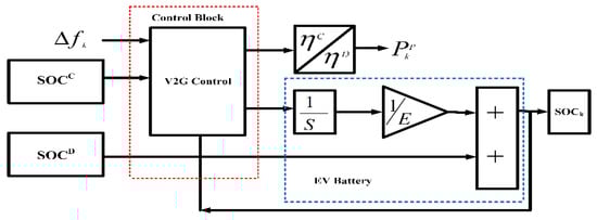 For the purpose of frequency regulation, the EVs can be assumed to be analogous to mobile electricity storage devices. Accordingly, the control objective of the V2G strategy for EVs participating in PFC in IMGs is to properly undertake regulation tasks. Conversely, the use of EVs for their primary purpose of transportation inflicts some limitation on their use in PFC. A customer’s charging/discharging decisions, in addition to the SOC of EVs, are also preconditioned on the electricity prices, which are in turn dictated by the time of day. Hence, the second control objective of the V2G strategy would be the fulfillment of the customer’s requirements.