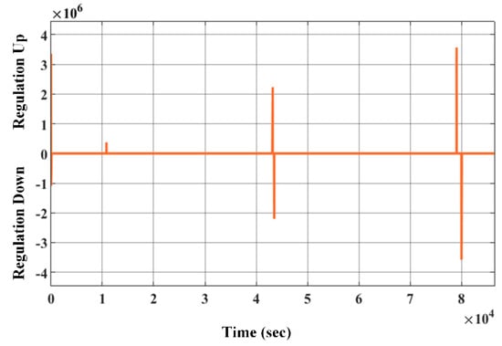 The main function of applying the frequency regulation strategy is to maintain the frequency levels as close to nominal frequency as possible. In case the electric load surpasses the generation, frequency levels exceed the threshold of nominal frequency, e.g., by 50 Hz. On the flip side, where generation exceeds the load, the frequency falls below nominal limits. Therefore, to maintain the frequency levels at steady nominal frequency levels requires a subtle balance in load and generation. Two levels of frequency regulations are usually attained: primary and secondary regulation. Primary regulation utilizes the generator’s governor reaction to fluctuations in the rotor speed to apprehend the frequency fluctuations [24]. The restoration is done in secondary regulation, where the automatic generation control brings the frequency to nominal levels.