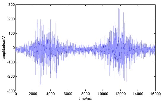 In this section, the sEMG signals collected in Section 2.2 are used to carry out the noise reduction experiment on the EMD algorithm. sEMG signals of the VM in the knee joint movement were selected for the denoising experiment. The original sEMG signals are shown in Figure 10.