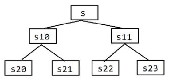 Wavelet packet decomposition. S is the original signal, s10 is the first signal of Layer 1 decomposition and s20 is the first signal of Layer 2 decomposition.