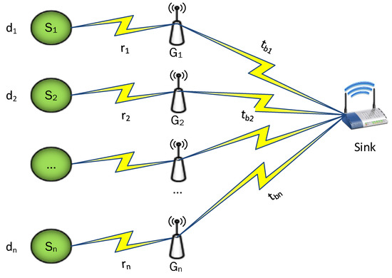 Data aggregation at each gateway node depends upon the data receiving rate from the connected source nodes. Afterwards, data transmission time for a single packet by each gateway node depends on the aggregated data size at respective gateway node. Brief descriptions of the various symbols used in the formulation are given in Table 1.