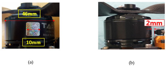 In Figure 4, the length of the reflector is 10 mm, the diameter of the BLDC motor used is 46 mm, and the distance between the reflector and the infrared sensor is 2 mm. The signal is measured by the infrared sensor only when the reflector passes the infrared sensor during one revolution of the motor, and the rotational speed of the motor was calculated in RPM as shown in Equation (10).