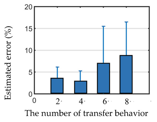 - The fitting function is verified by comprehensive experiments and error analysis. The estimated error of the model (mean and standard deviation) for all subjects is shown in Figure 9. The results show no significant difference (p > 0.05). The accuracy is high for less transfer time (2 and 4 times) tasks, where the error is lower than 5%. The performance of the proposed differentiated model slightly declined as the transfer time increased (6 and 8 times).