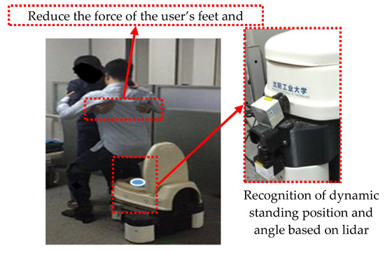 We optimized the HRI process to reduce the user’s fatigue, as shown in Figure 11. Taking the rising-seating-excretion transfer as an example, the nursing staff carried most of the bodyweight of the user and reduced the pressure on the hands, feet, hips, and back. This also improved the stability of the transfer process. Meanwhile, the robot recognized the standing positing and angle of the user based on two lasers, and implemented a “follow-up” control. The user did not worry about the seating way and occurrence of dangerous behavior. The process of the user’s driving force was changed from an active one to a passive one, with the collaboration of the nursing staff. The mental fatigue is a parameter with a fuzzy boundary. Therefore, it could not be used as a precise real-time signal as feedback to establish a precise closed-loop system. Therefore, this paper only optimized the MRS and transfer mode by the parameter to reduce the mental fatigue of the HRI process.