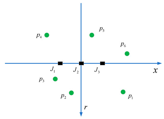 As described above, to obtain effective deceptive jamming against the multichannel SAR, the number of transponders should be the same as or more than the number of SAR channels. Only in this way can false targets be accurately generated without being discovered. Here, we give the general architecture of multiple transponders deceiving multichannel SAR. The deceptive jamming method against three-channel and dual-channel SAR is just a special case. According to the analysis of deceptive jamming against the three-channel SAR-GMTI, we extend it to more universal model for multichannel SAR. In this case, it is assumed that the SAR has sensors arranged along the track direction with transponders on the ground parallel to the track. must satisfy . Then, the complex coefficient vector satisfies Equation (33) when the transponders works synergistically.