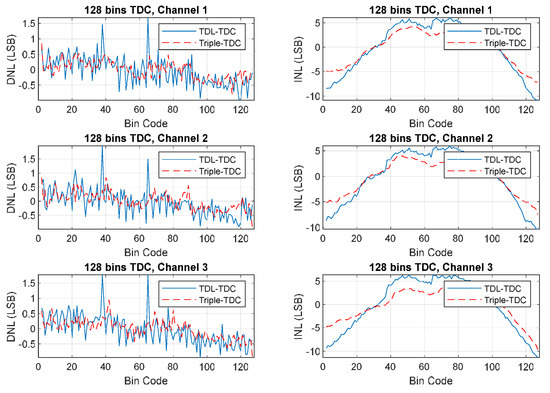 Measured DNL and INL values for the triple-TDC and TDL-TDC.