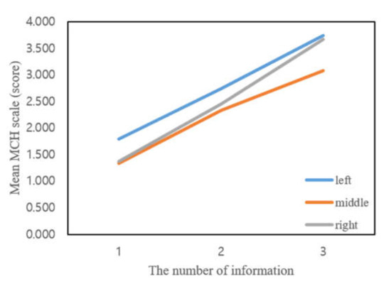 Modified Cooper–Harper handling (MCH) scale according to the level of the number of information and area of HUD.