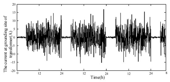 The measured waveform of the neutral point current waveform of the main transformer with DC bias near the subway is shown in Figure 2.