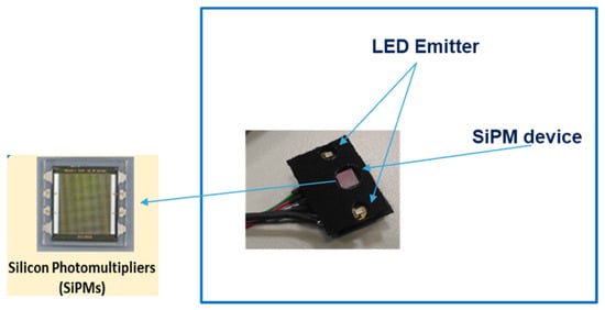 The proposed PPG coupled sensing device (LED + silicon photomultipliers (SiPMs)).