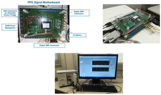 - Vinciguerra, V.; Ambra, E.; Maddiona, L.; Oliveri, S.; Romeo, M.F.; Mazzillo, M.; Rundo, F.; Fallica, G. Progresses towards a processing pipeline in photoplethysmogram (PPG) based on SiPMs. In Proceedings of the European Conference on Circuit Theory and Design (ECCTD), Catania, Italy, 4–6 September 2017; pp. 1–5. [Google Scholar]