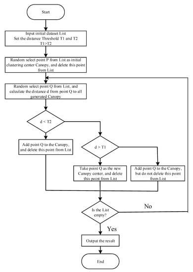 The Canopy algorithm does not need to specify the number of cluster centers in advance. Generally, the Canopy algorithm can be used to coarsely cluster the data in the preprocessing stage. Then the data are accurately processed according to the coarse clustering results to obtain better clustering results.
