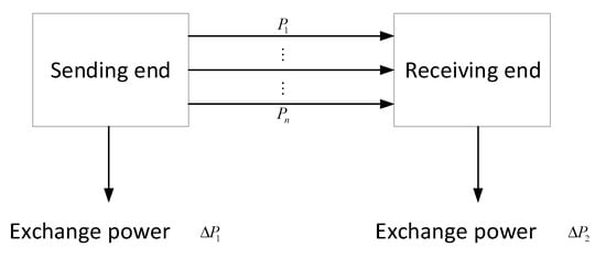 According to the power flow relationship between zones, the two ends of the transmission channel are divided into the sending end and the receiving end; the power flow direction is shown in Figure 5. Assume that there are n transmission lines between the sending end and the receiving end. The active power of each transmission line is defined as , and they constitute a transmission channel.