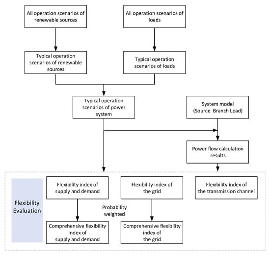 At the same time—from the perspective of supply and demand balance, power flow distribution and transmission capacity, flexibility evaluation indices of the power system were proposed, and flexibility evaluation was performed, based on typical operating scenarios. The calculation results show that the proposed indices reflect the flexibility status of the power system. Typical operating scenarios can represent the flexibility of all the operating scenarios of the power system throughout the cycle, thereby improving the flexibility evaluation efficiency.