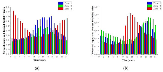 Comparison of flexibility index of Zone 1. (a) upward supply and demand flexibility index. (b) downward supply and demand flexibility index. (c) grid flexibility index.
