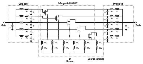 Overall equivalent circuit of the 10-finger GaN HEMT.